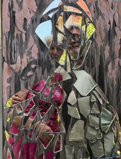 Spiegelscherben, das sich durch Standort und betrachtende Person
