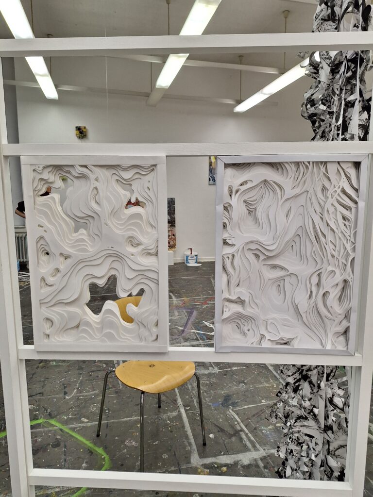 Im Alltag sind die Dinge meistens viel komplexer, als sie zu Beginn erscheinen. Dieses Prinzip übertrage ich auch auf meine Arbeiten. Ich schichte mehrere Lagen Papier aufeinander, die ich zuvor einzeln bearbeitet habe. Jede Ebene baut auf die darauf folgende auf. Mein Ziel ist es, etwas zu erschaffen, das dem Betrachter die Möglichkeit gibt, bei jedem Blick etwas Neues zu entdecken.