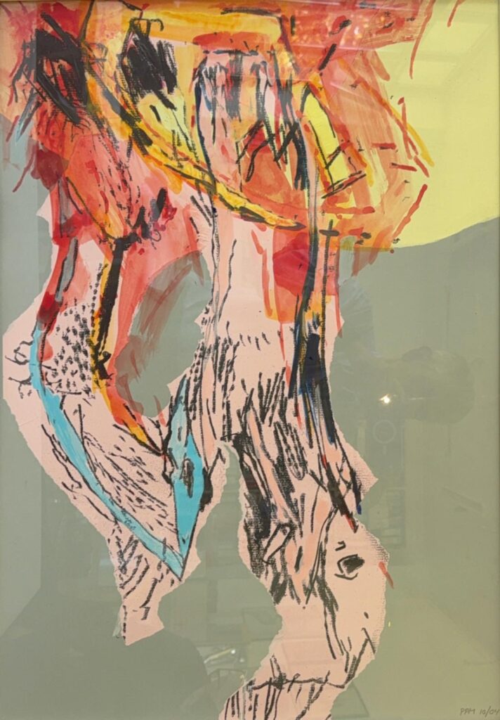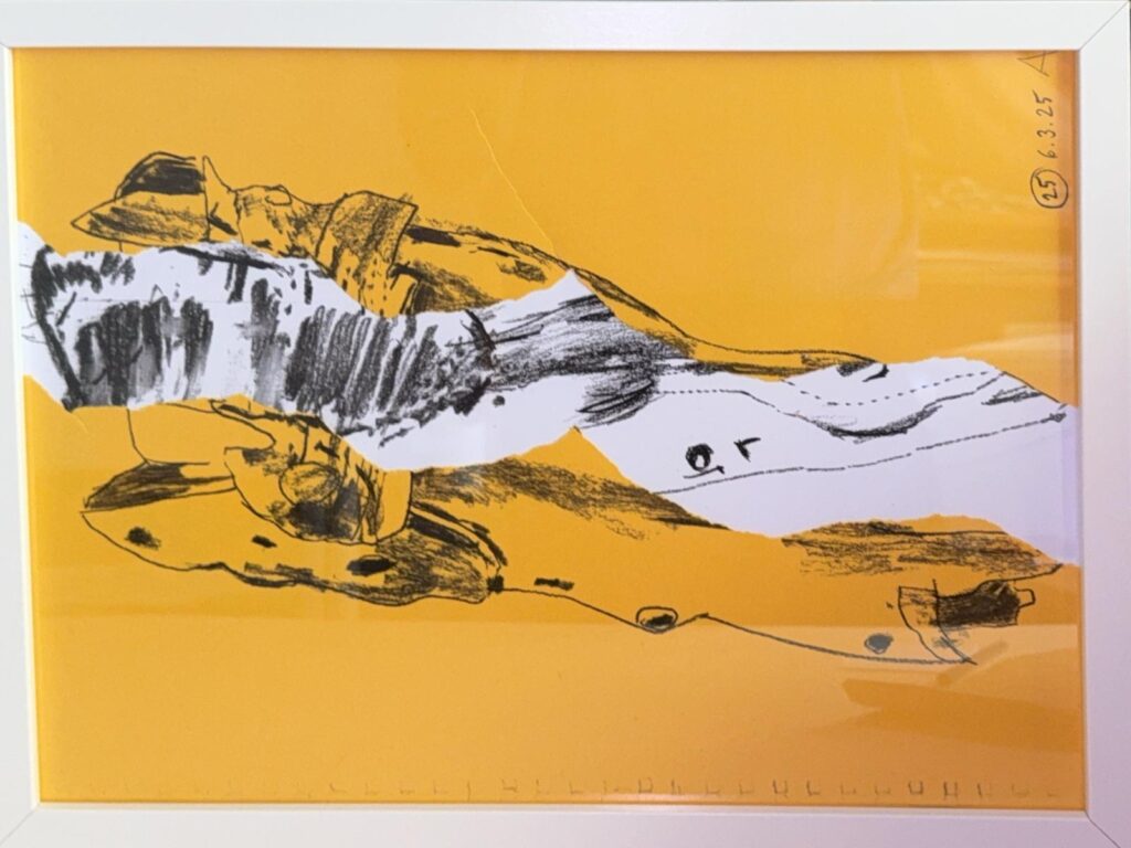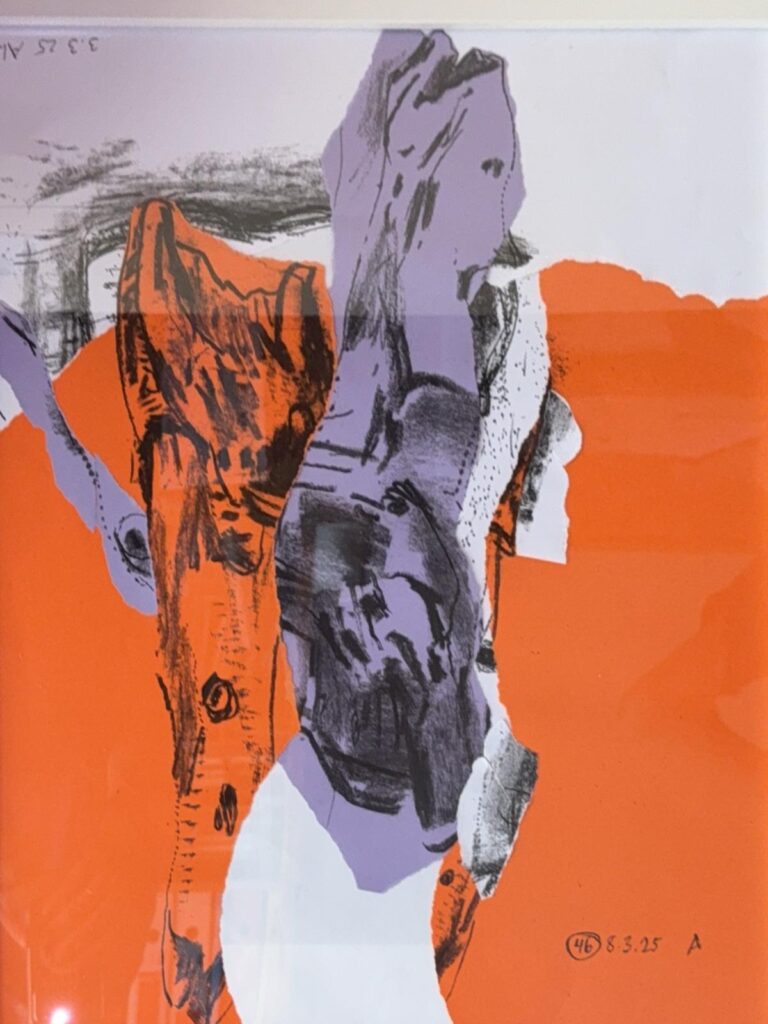 Diese werden zu Collagen zusammengesetzt und ergänzt durch Übermalungen und farbliche Eingriffe. So entstehen Motive zum Thema Verhüllung, Verwandlung und Metamorphose.